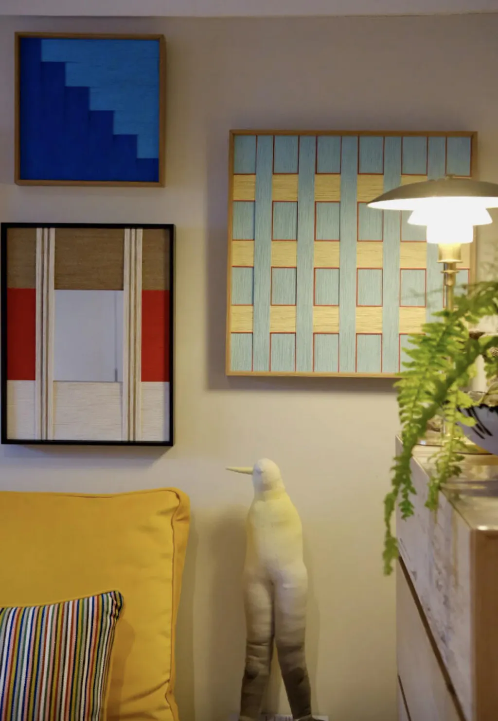 Honestly, I wasn't sure if fiber art was my style, but this piece is sharp. The texture makes it pop way more than a regular flat print. I just have it leaning on my shelf and it instantly upgraded the whole corner. Solid frame, too. Glad I pulled the trigger on this.