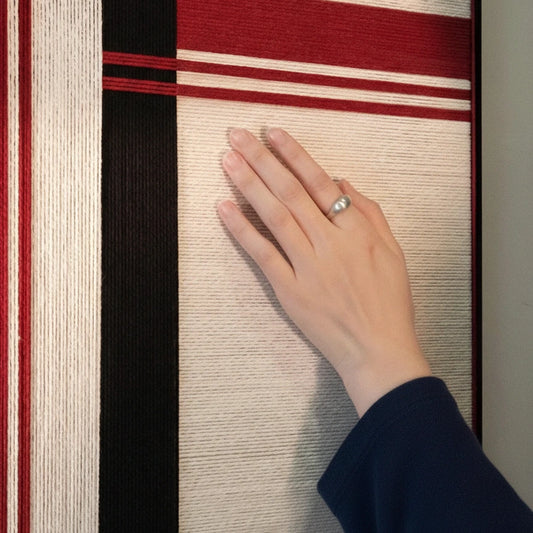 Technique: Hand-wrapped yarn (Combination of solid block and vertical striping)
