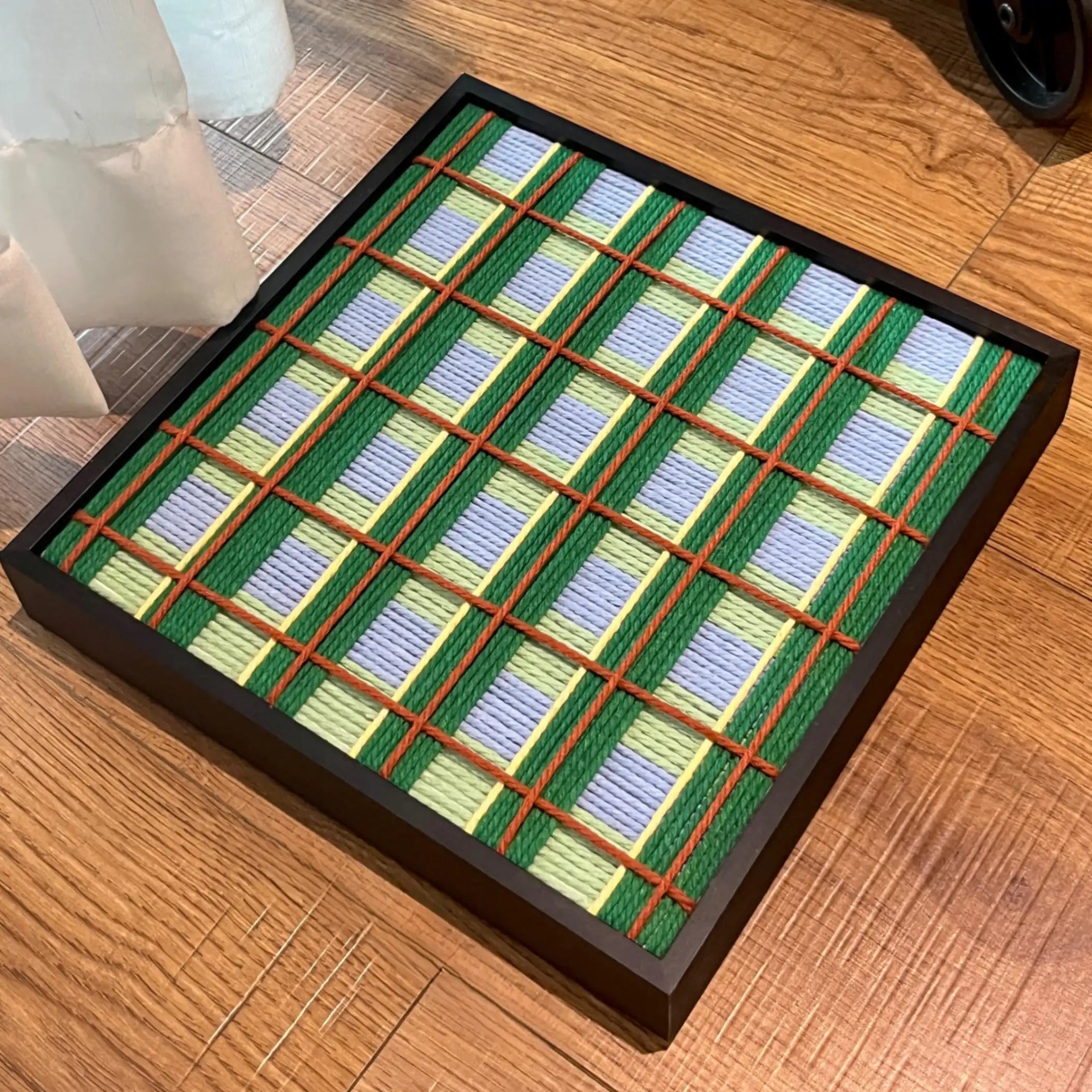 Once the design is finalized, we begin the handcrafting process. Each artwork use eco-friendly cotton yarn and requires an average of 1,000 yarn wraps, taking between 18 to 36 hours to complete.
