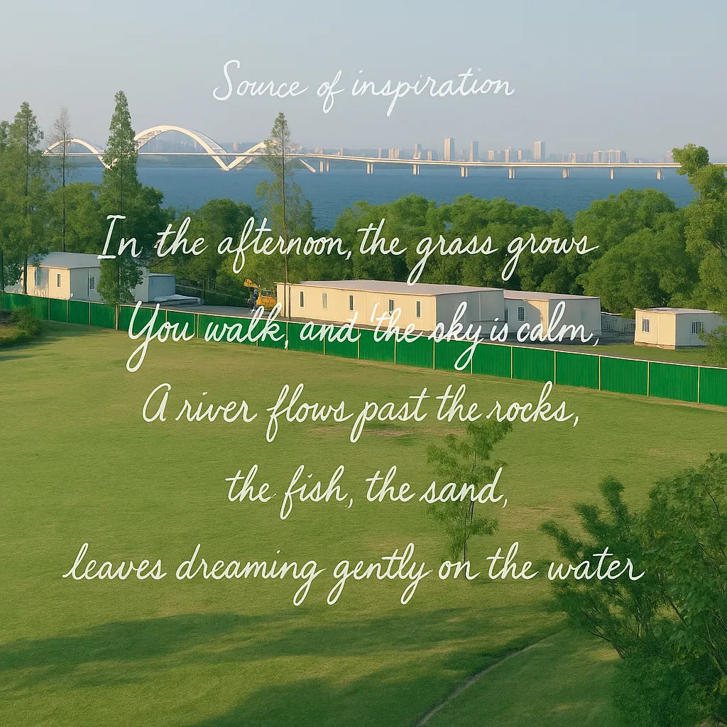 Inspiration graphic for Riverside featuring a riverside landscape and the quote “Where colors flow like water, calm follows” to illustrate the design concept