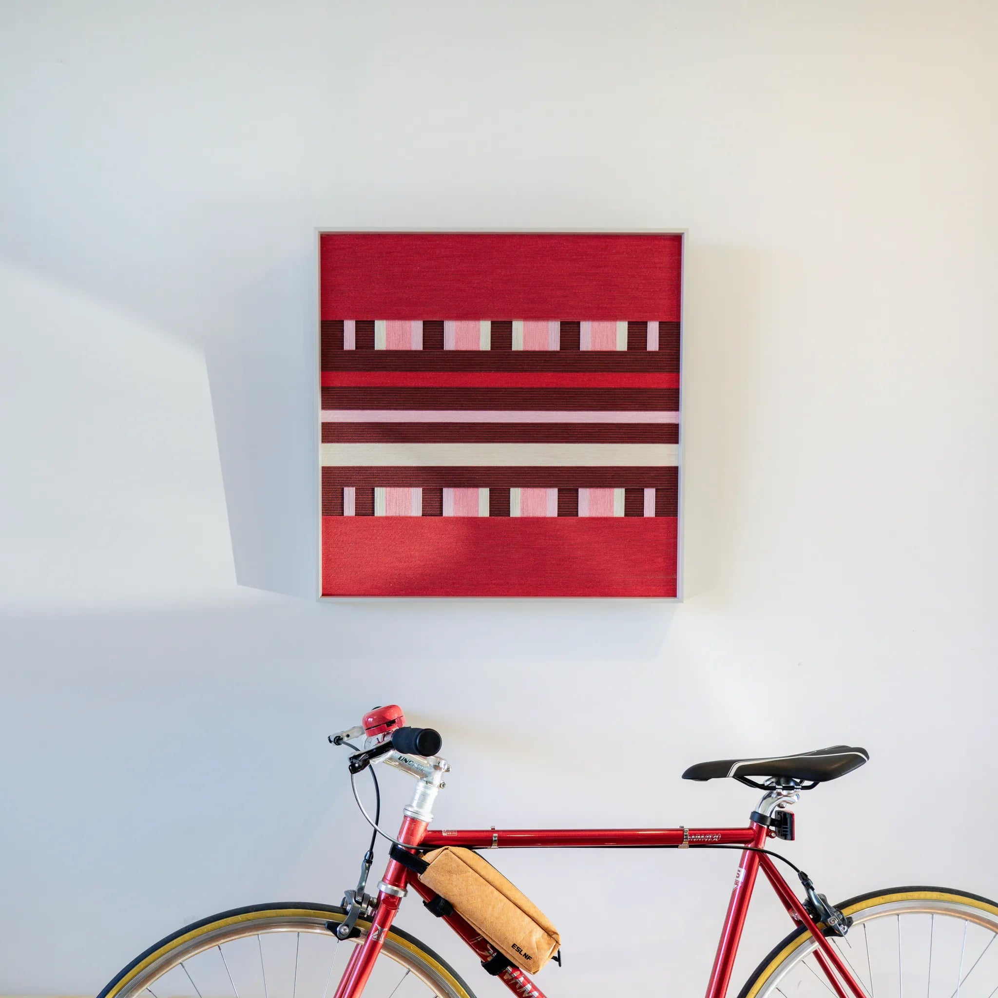 Premium Finish: Enclosed in a Premium Metal frame, adding a sleek, modern edge to the warm, handcrafted fiber art.