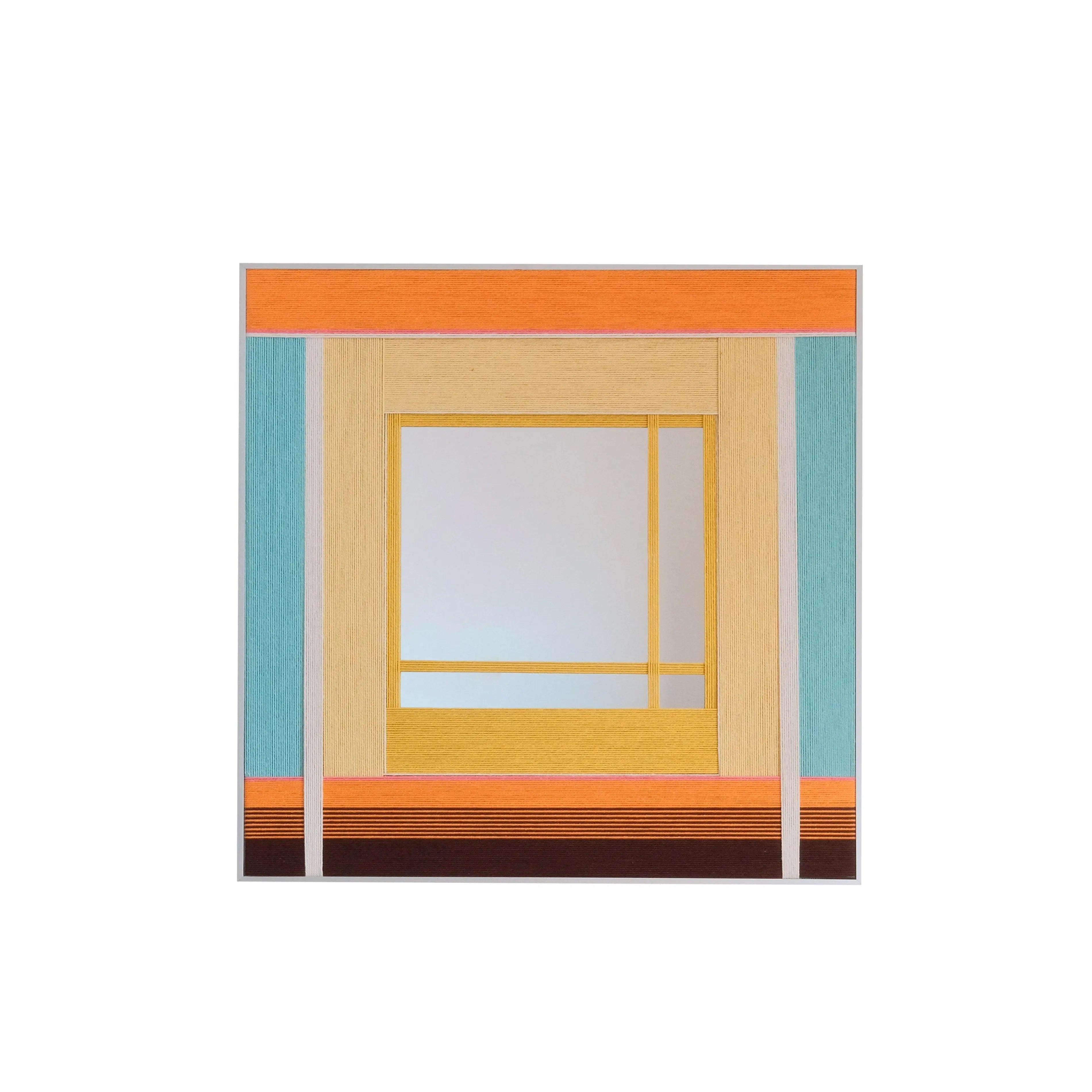 Front view of Sun‑Drenched Days yarn wall art on a plain white background, showing exact square proportions and clean stripe layout.